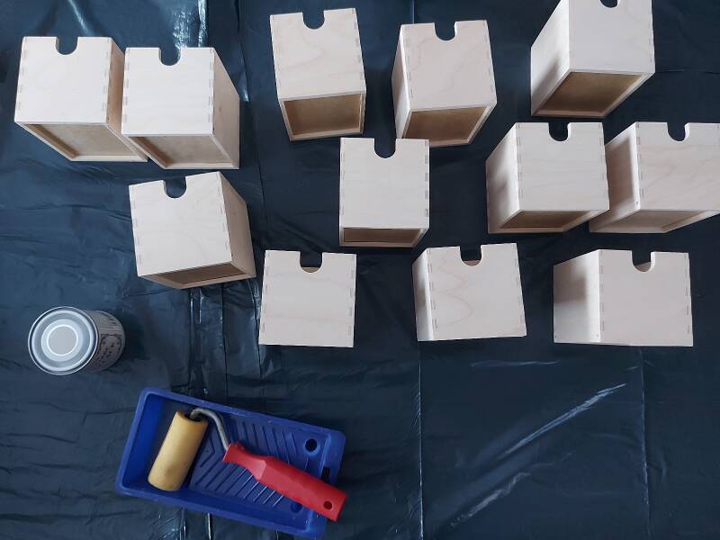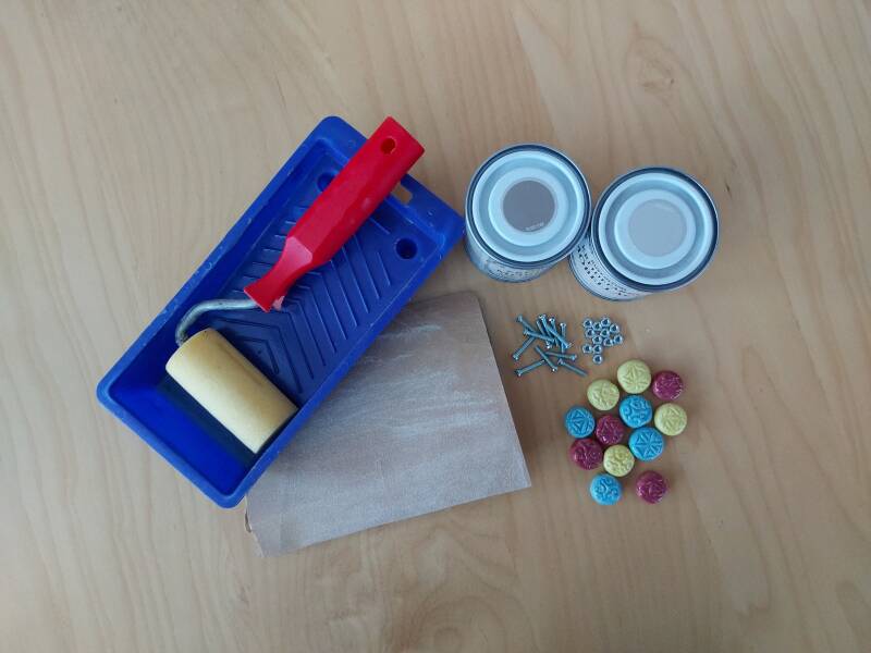 Als Erstes habe ich alle Oberflächen mit einem Schleifpapier abgeschliffen und mit einem trockenen Tuch gesäubert, damit die Farbe besser hält.